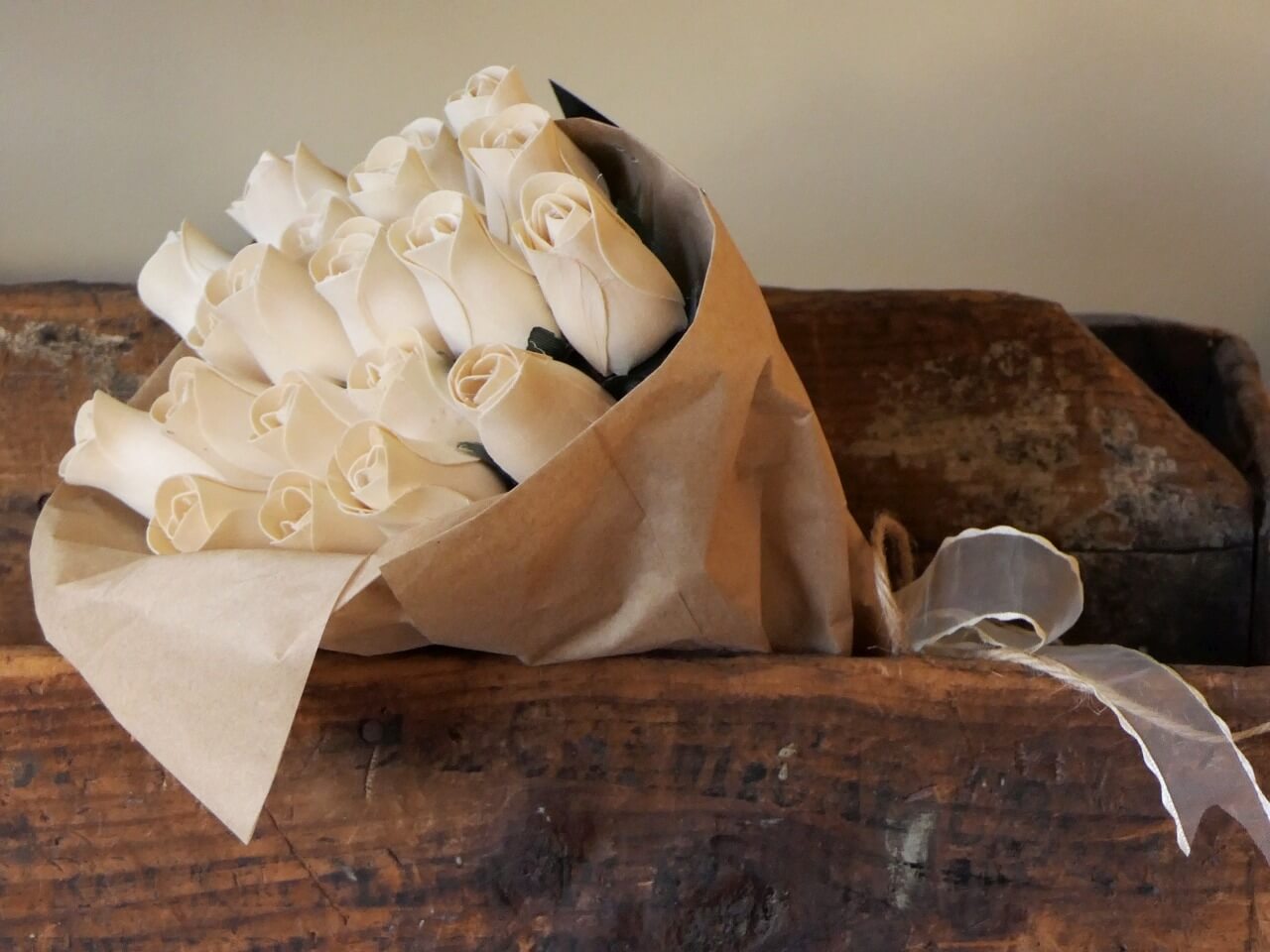 בזר 18 ורדים יפיפיים מעץ צבועים בצביעה ייחודית עם גבעול גמיש שניתן לכופף.
